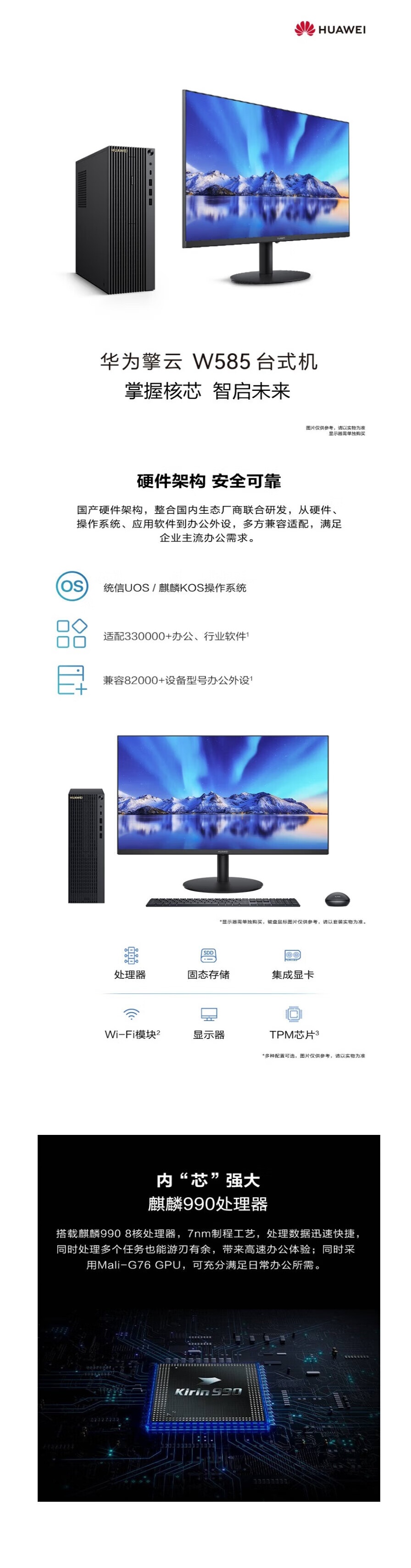台式计算机 华为/Huawei W585x-A001 麒麟9000C 23.8 集成显卡 共享内存 256G 8GB